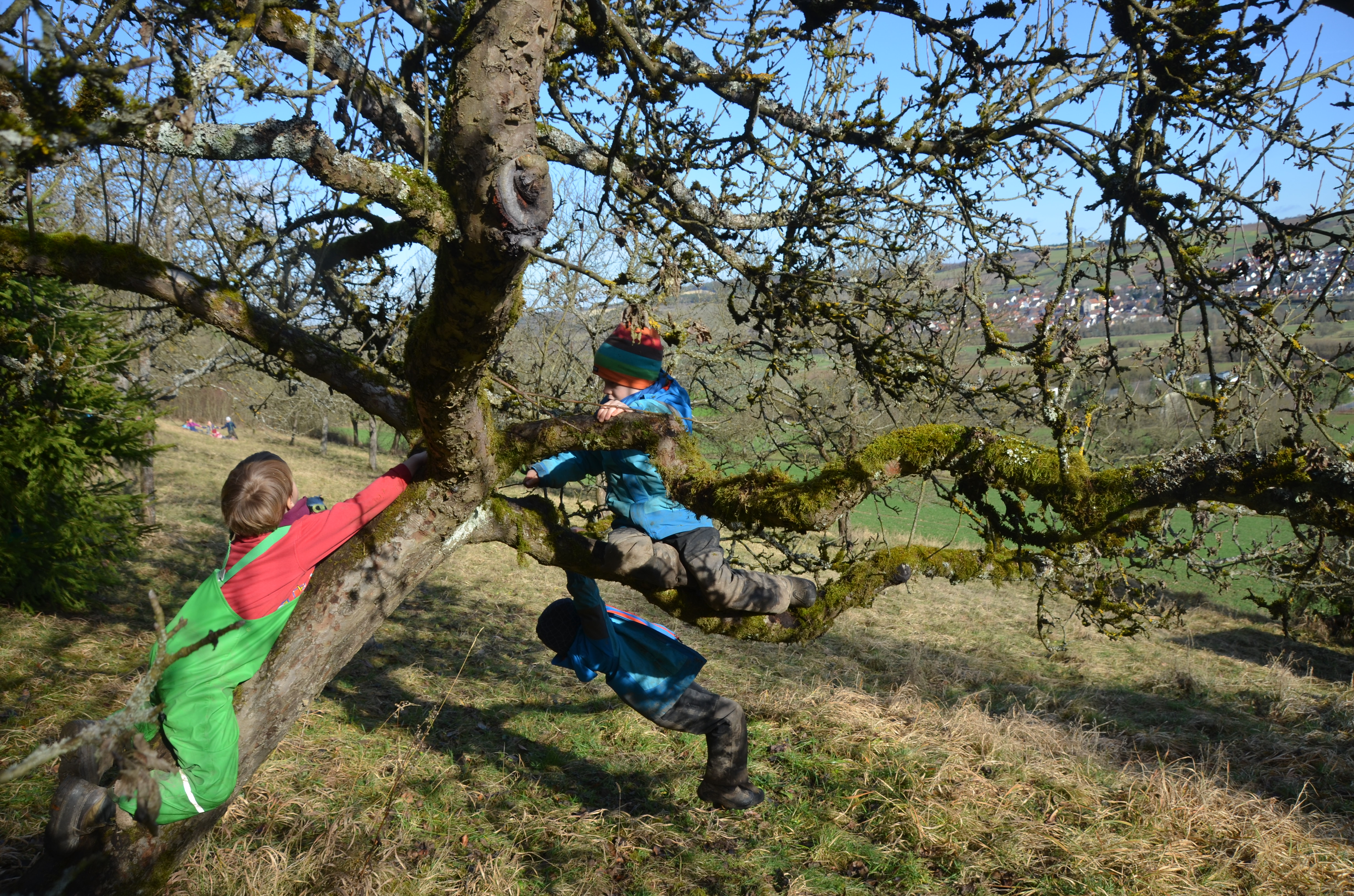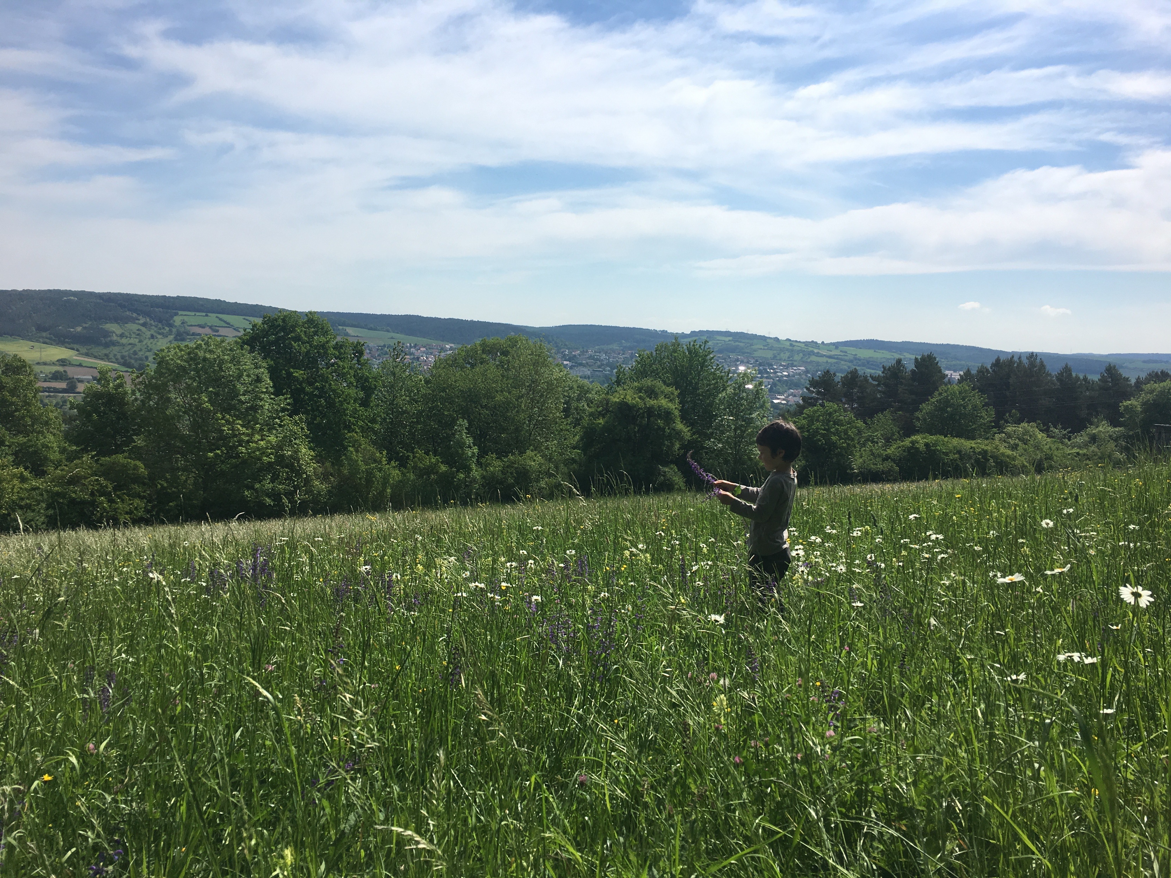 Die Waldkindergartenkinder gehen mit der spannenden Situation ganz gelassen um. Sie haben in den letzten Jahren schon viel Wissen zum Thema erworben, das sie jetzt gerne auch der Kamera anvertrauen. Kräuter auf der Streuobstwiese sammeln und mit eigenen Zutaten eine Suppe auf dem Feuer kochen, sind hier sowieso Routine und Erzieher Tobias Hornung schnitzt aus Holzstöcken dazu Löffel mit den Kindern. Ganz nach dem