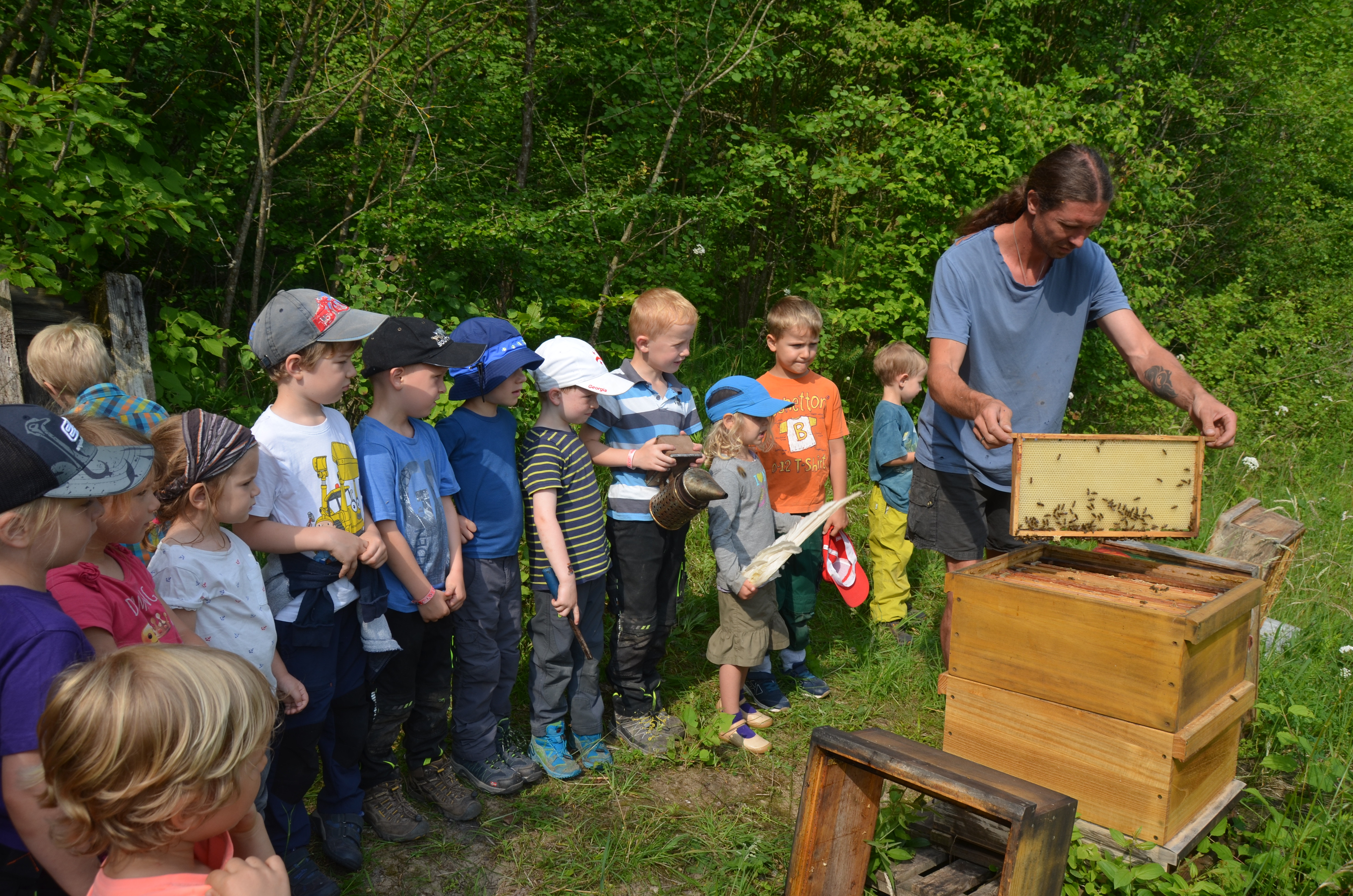 lebenspraktischen Ansatz (vgl. Ingrid Miklitz) werden im Kinderwald Bienenstöcke gesäubert und möglichst viel vor Ort selbst hergestellt. Es wird alles getan, um die Mitwelt nicht mit Plastik zu belasten.